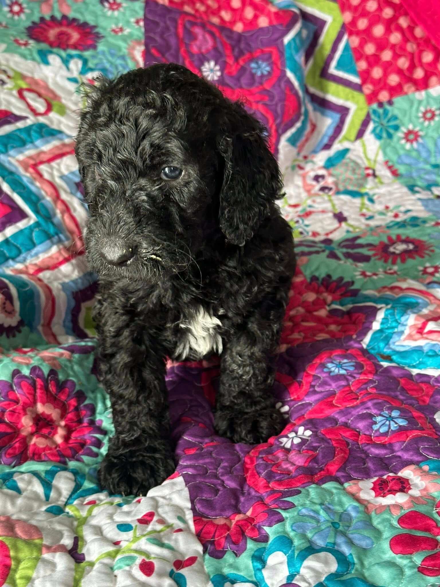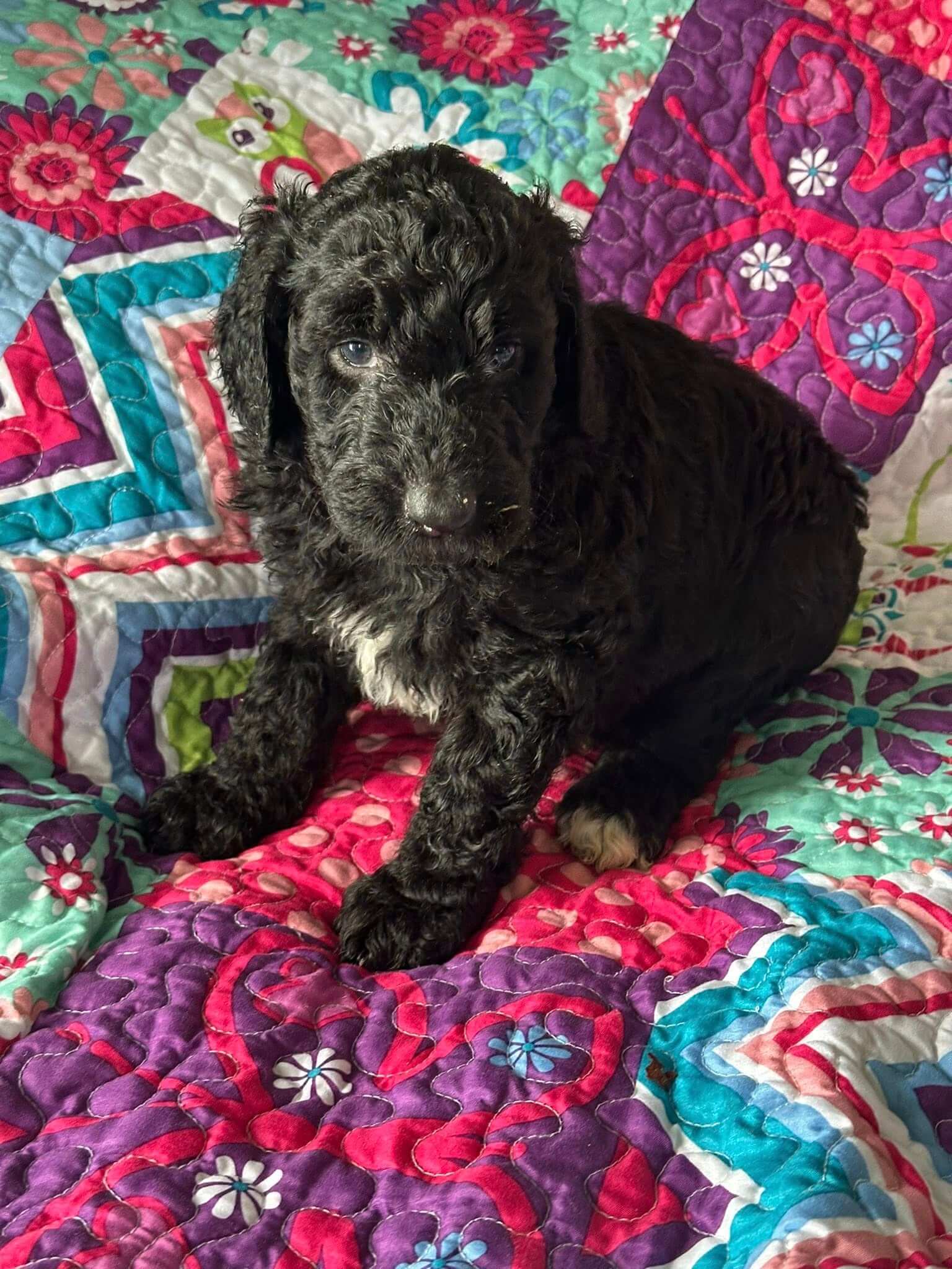 These amazing four-month-old female puppies are ready to be loved—five Bernedoodles and one unique Australian Mt Doodle with a charming non-doodle coat. Each has her own sweet personality, playful spirit, and loving heart.